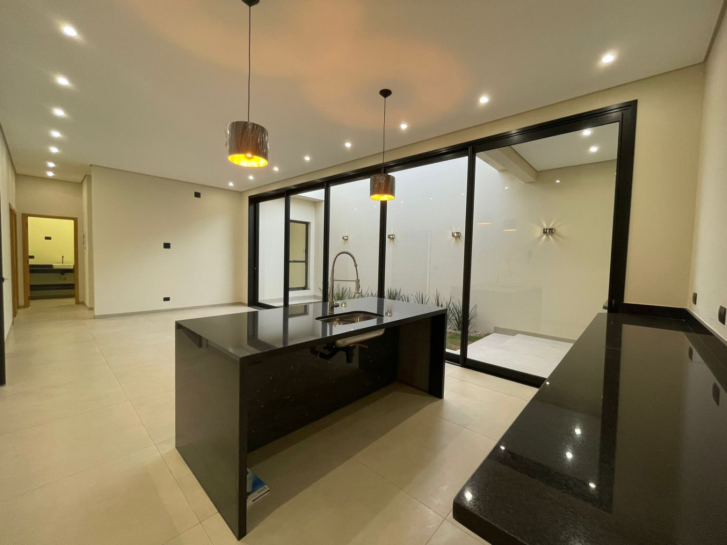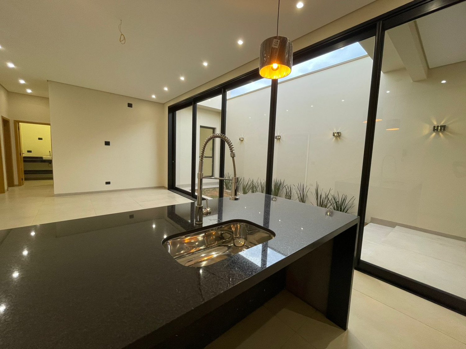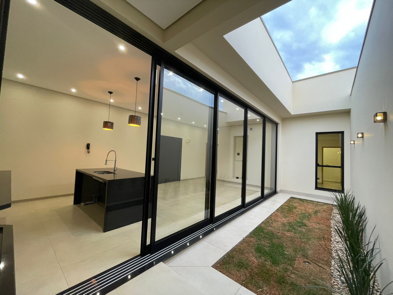 Residência novíssima, com excelente padrão construtivo, marcada por elementos que proporcionam elegância e autenticidade, distribuída em  145,40 metros de construção, com acabamento em porcelanato, laje, esquadrias, portas e janelas em alumínio preto, blindex, beneficiada com 03 dormitórios (sendo 01 suíte), sala TV, jantar e cozinha em conceito aberto, lavanderia, banheiro social, e garagem ampla.