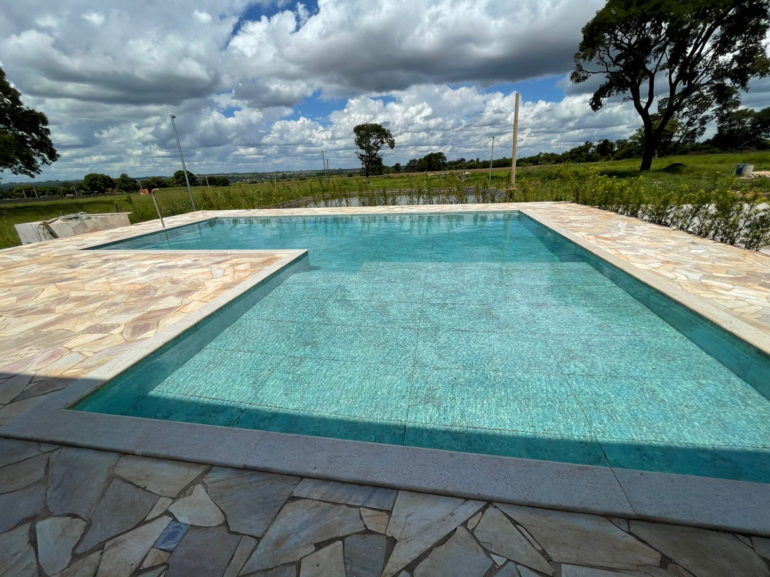 Varanda ao redor de toda casa, 02 banheiros externos, lavanderia, fossa séptica, poço semi artesiano, 02 caixas d`´agua de 3 mil litros cada, piscina de alvenaria, tanque de peixe, e pomar em formação.