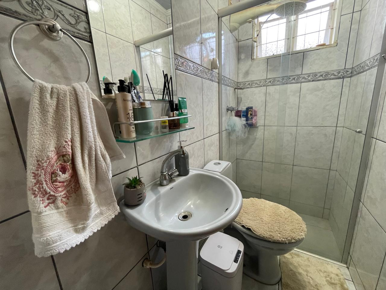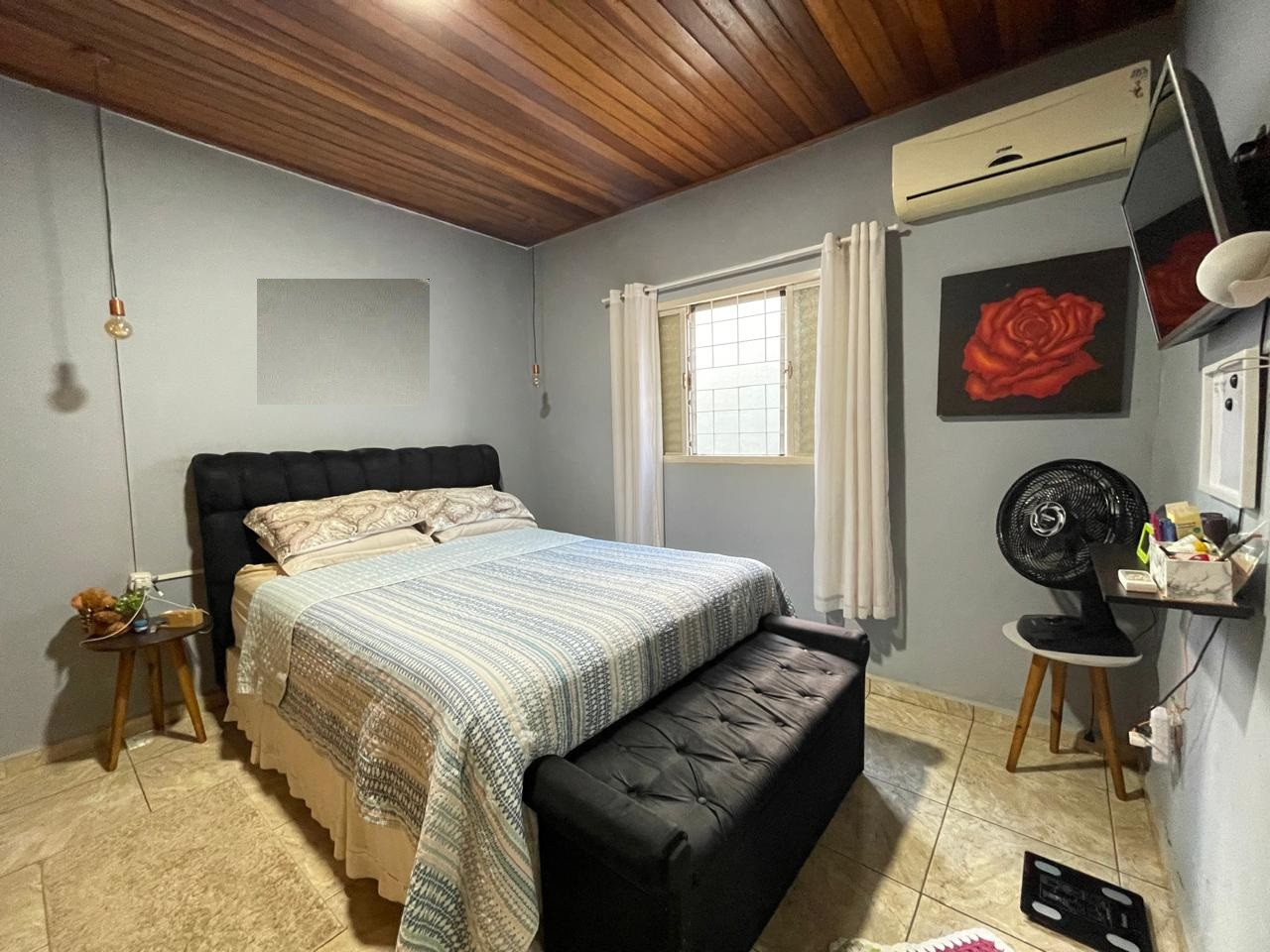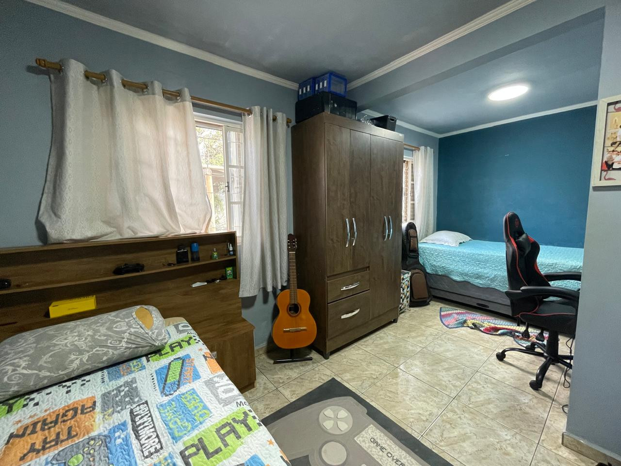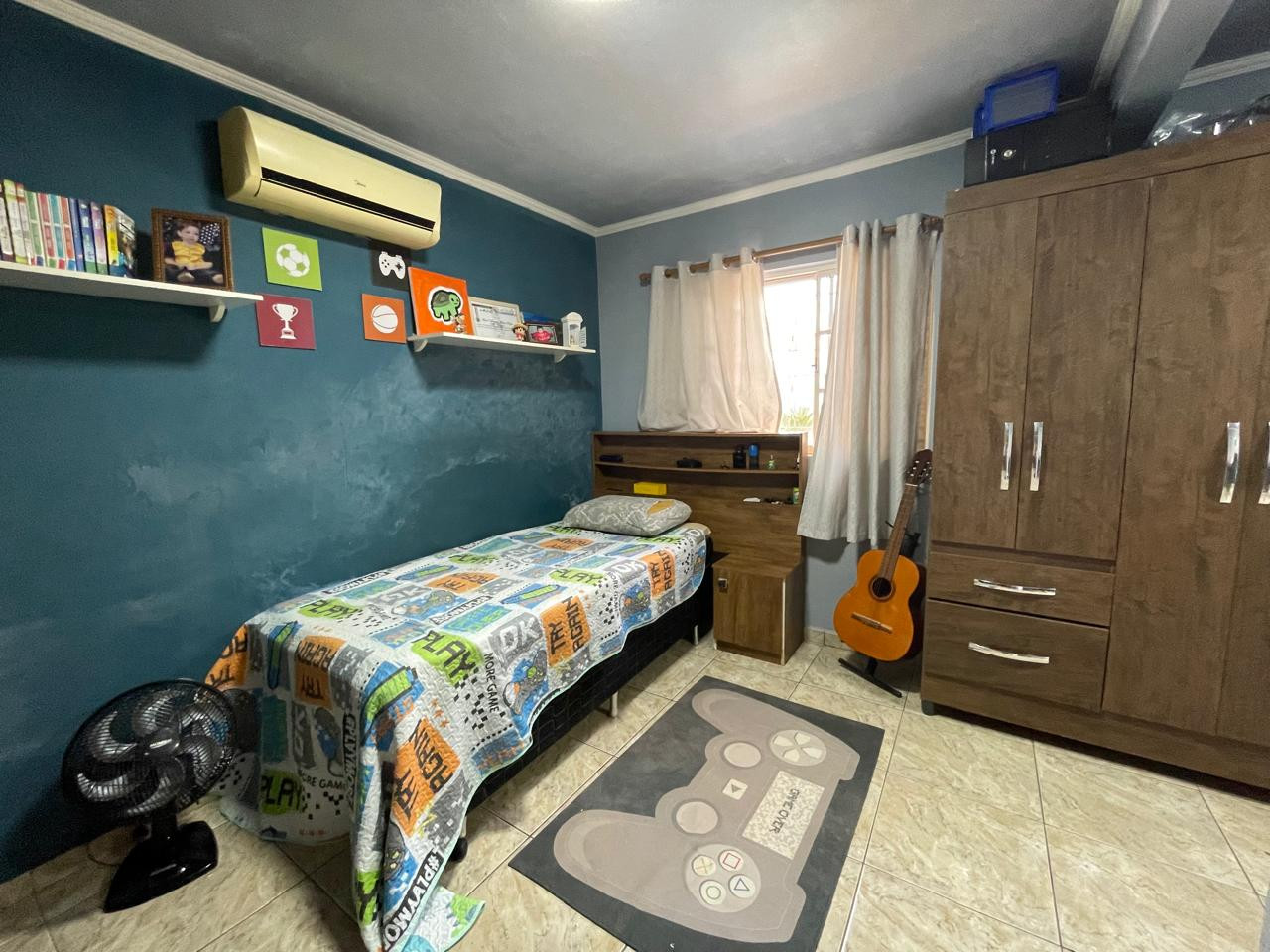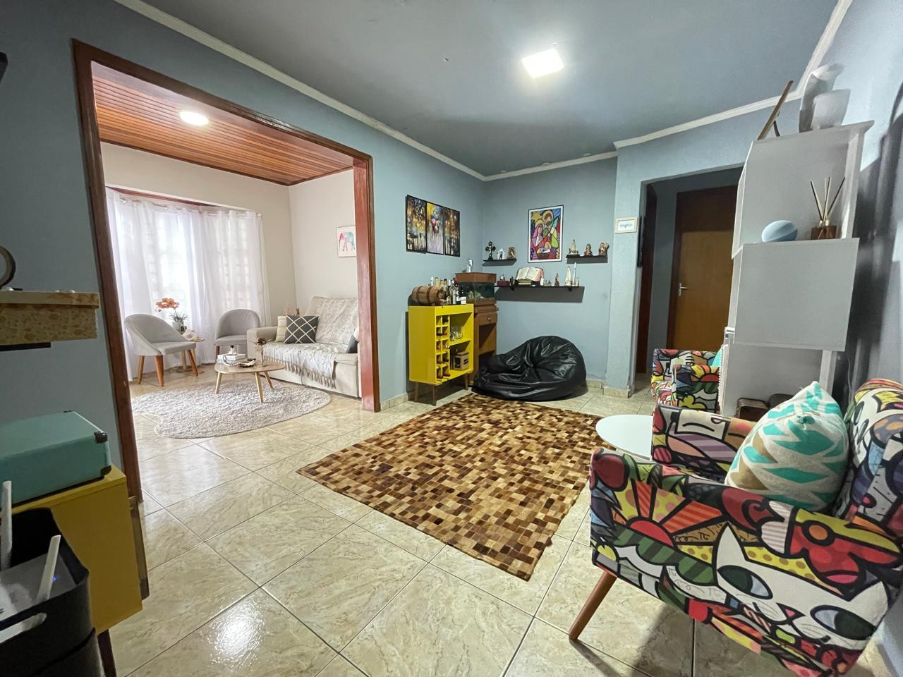 Residência beneficiada com 03 dormitórios (sendo 01 suíte), sala de TV, sala de estar, banheiro social, cozinha com armários, copa, área de churrasco, lavanderia, pequena piscina, pergolado, garagem com portão eletrônico e interfone.