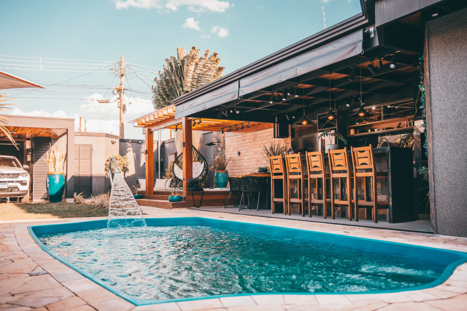 Composta com 02 dormitórios com armários planejados (portas balcão automatizadas e ar condicionado), sala de TV, banheiro social, cozinha com armário planejado, fogão cooktop, área gourmet toda fechada em blindex com armário planejado (fogão, forno, ar condicionado de 35 mil btus que atende também a cozinha e sala), varanda toda fechada em blindex climatizada com ar condicionado de 18 mil btus), banheiro externo, lavanderia com armário planejado, jacuzzi que atende 06 pessoas (com hydro, air blower, aquecida e led), piscina com 06 metros (com hydro, aquecida e com led), área gourmet para atender a área úmida (piso antiderrapante, ilha, armário planejado, forro invertido, led e toldo), garagem com portão eletrônico para 02 carros, toda revestida, sistema de segurança, enfim, uma casa perfeita, prontinha para atender você e sua família.