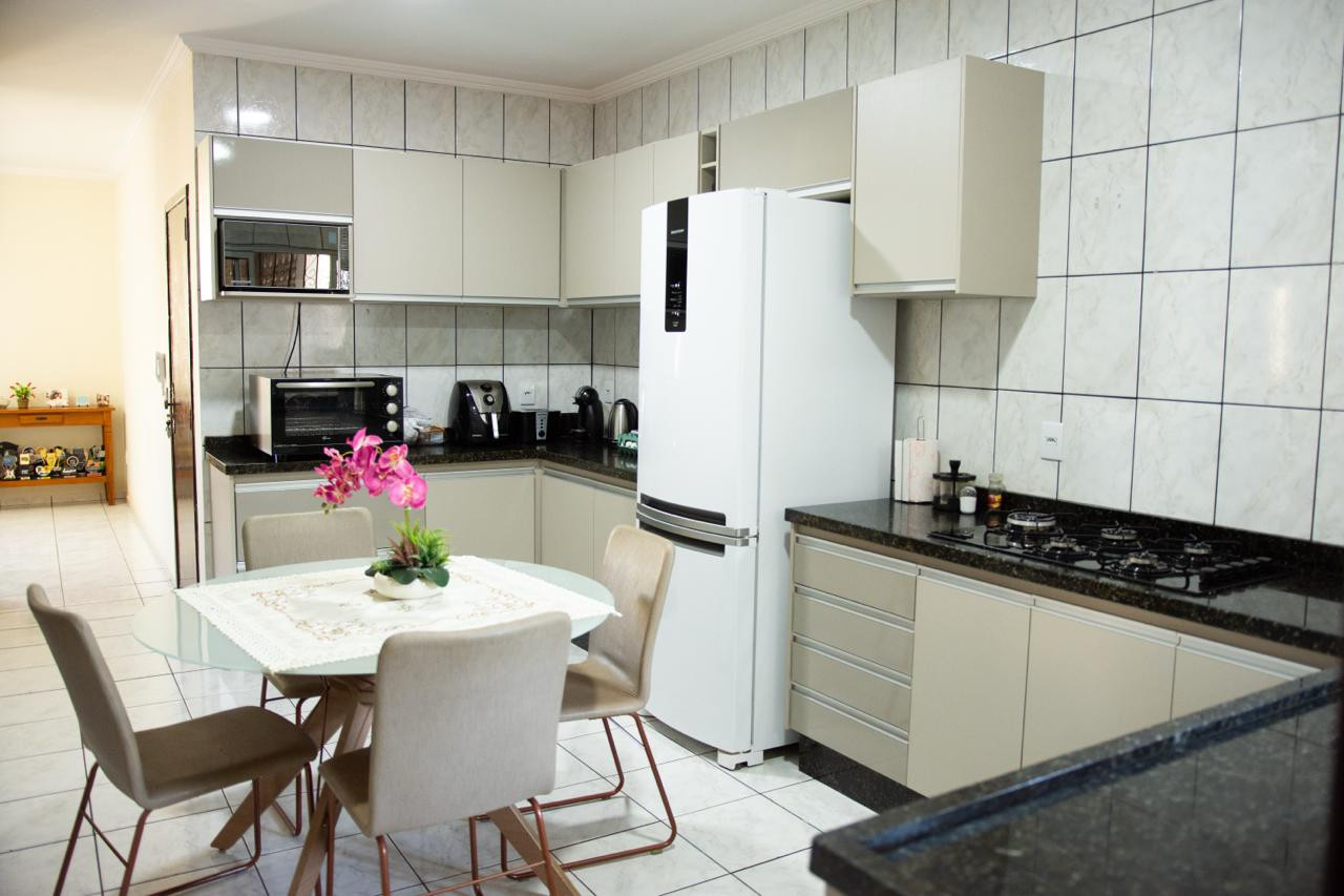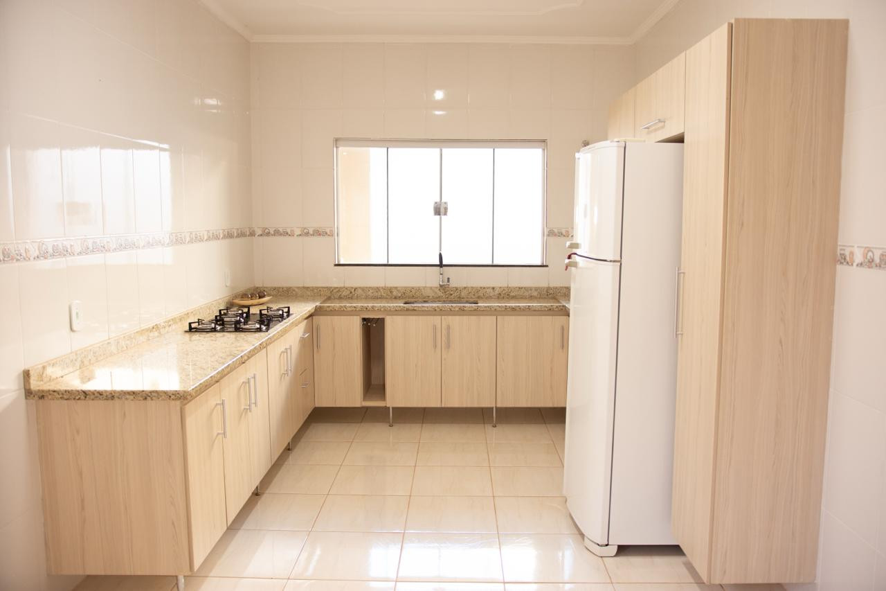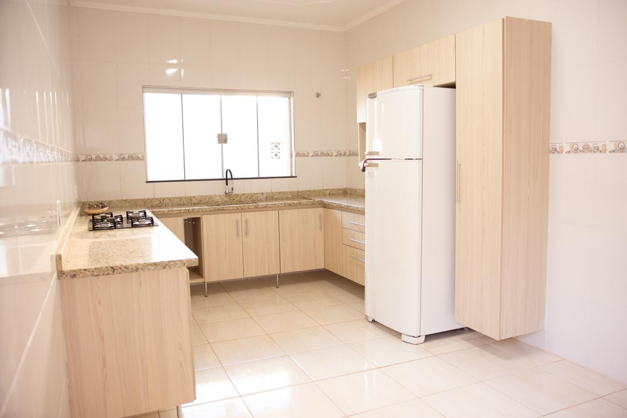 A residência dos fundos ainda está cheirando a novo, nunca foi residida, é composta com varanda com churrasqueira e área de serviço, 02 dormitórios, banheiro social, sala, e cozinha com armário planejado e fogão cooktop.